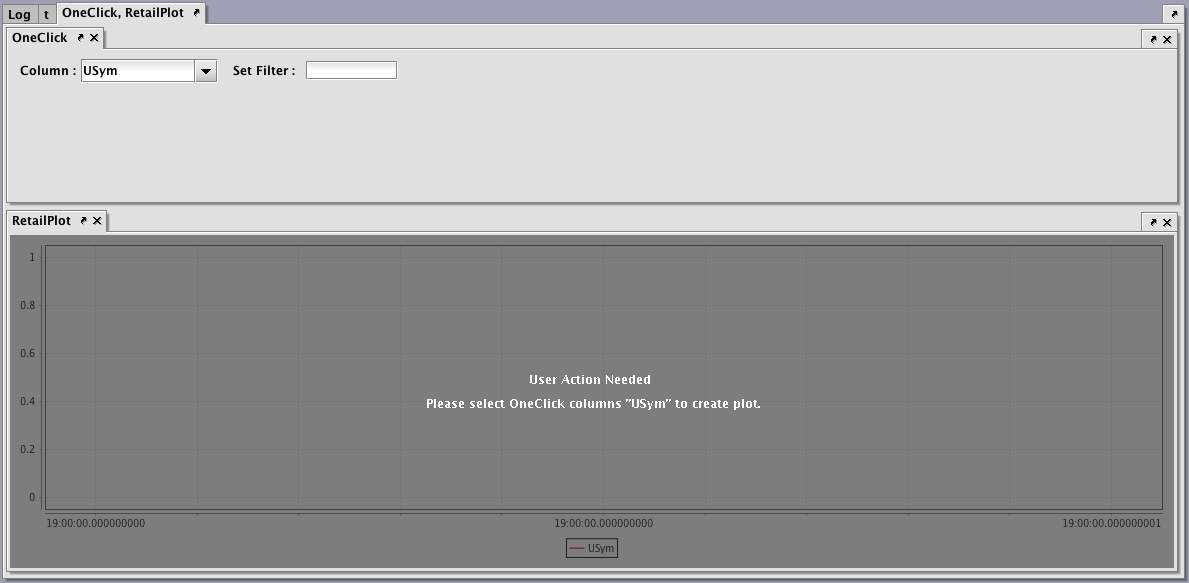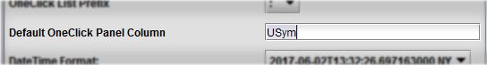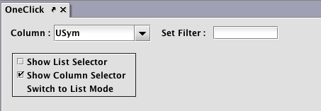 When you first use the OneClick feature in Deephaven, "USym" is used as the default value in the Column drop-down menu, as shown below.