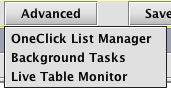 To access the OneClick List Manager, click Advanced at the top of the interface, and then choose OneClick List Manager from the drop-down menu.
