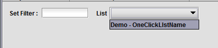 To view the List drop-down menu, right-click in the OneClick panel and select the check box for Show List Selector. When the List drop-down menu appears, click on the down arrow and select the list with which you want to filter, as shown below.