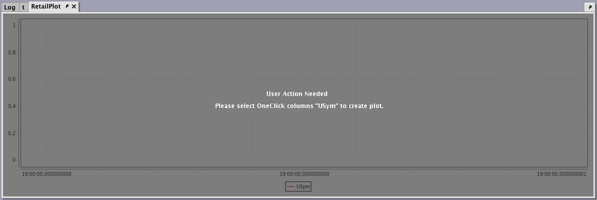 When the query runs, a panel named RetailPlot is presented in the console, as shown below. The data used to generate the plot is a SelectableDataSet now, so no data is being shown.