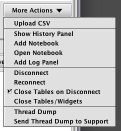- Close Tables/Widgets closes all tables and widgets generated by this instance of the console.