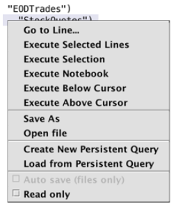 The next sections of the right-click menu provide the following options related to saving, opening , loading and creating external files and persistent query scripts:
