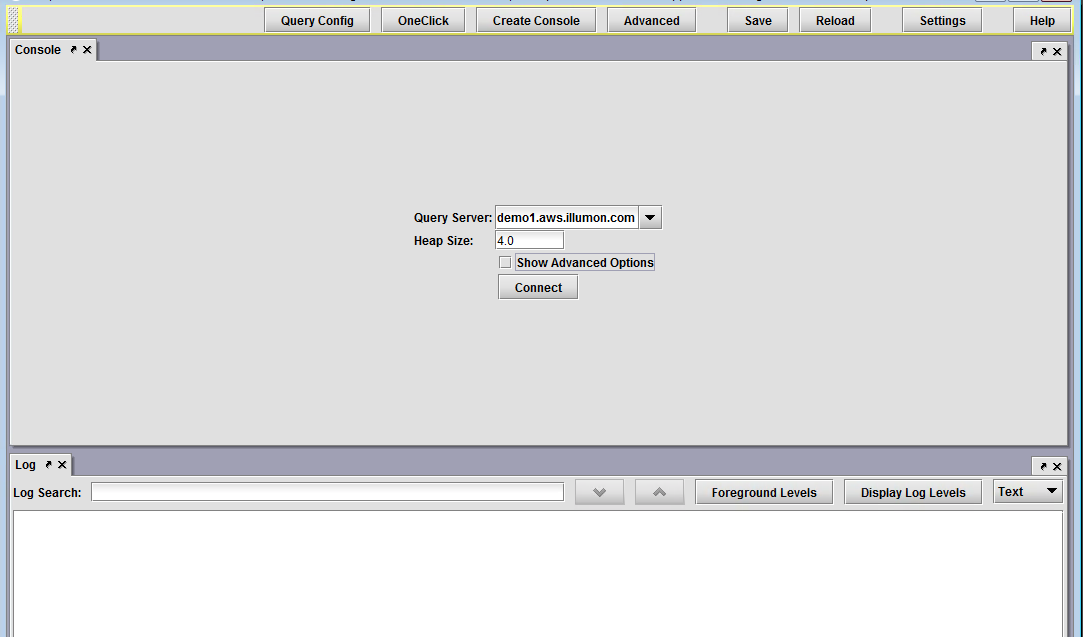 In the Console window, you will be presented with options to specify the Query Server you want to use and the Heap Size (memory size) requested to run the query.