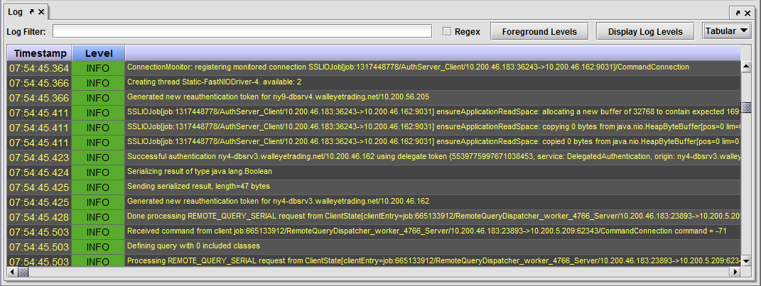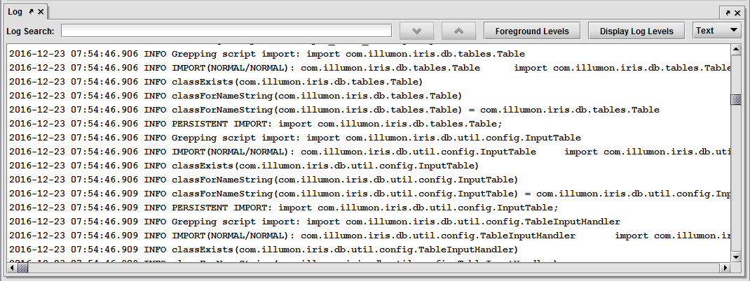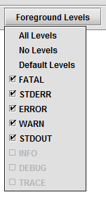 The Foreground Levels drop-down menu allows you to choose which level of logging detail brings the log panel to the foreground of the interface (assuming it is not already). For example, a user may want a FATAL or ERROR log notation to be shown immediately, whereas a TRACE notation would not require such attention.
