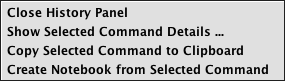 - Create Notebook from Selected Command: When selected, the command highlighted will be copied to a new Notebook panel. (More information on the Notebook is presented below.)