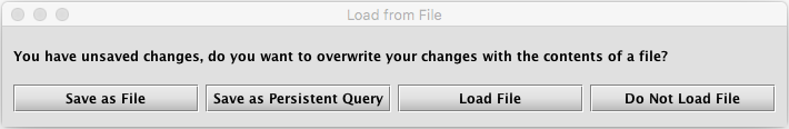 - Load script from <script name> - This option is presented when the content of the notebook was derived from a previously existing persistent query. When selected, this option provides users the option of loading the content from a specific existing persistent query.