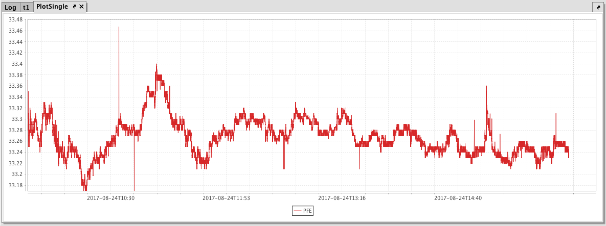 PlotSingle = plot("PFE", t1.where("USym = `PFE`"), "Timestamp", "Last")