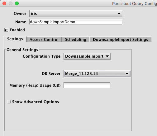 Options available in the Show Advanced Options section of the panel are typically not used when importing or merging data. To learn more about this section, please refer to the Persistent Query Configuration Viewer/Editor.