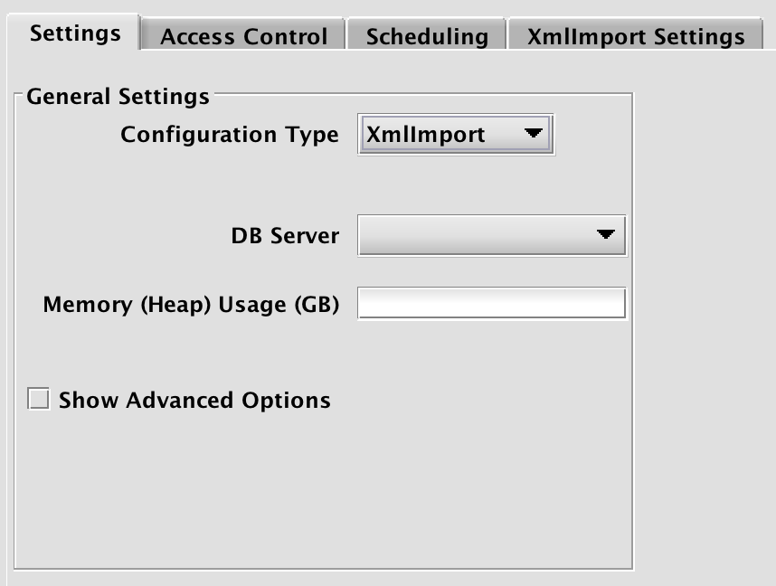 Options available in the Show Advanced Options section of the panel are typically not used when importing or merging data. To learn more about this section, please refer to the Persistent Query Configuration Viewer/Editor.