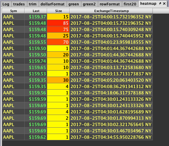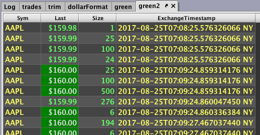 green2 = dollarFormat.formatColumnWhere("Last", "Last >= 160.00", "GREEN")
