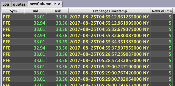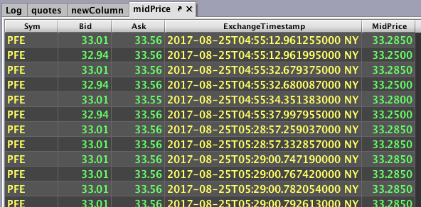 midPrice = quotes.updateView("MidPrice=(Bid+Ask)/2")