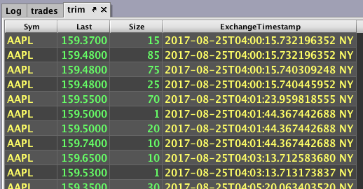 trim = trades.view("Sym", "Last", "Size", "ExchangeTimestamp")