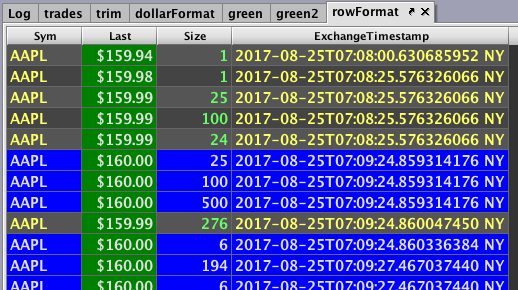 rowFormat = green.formatRowWhere("Last >= 160", "BLUE")