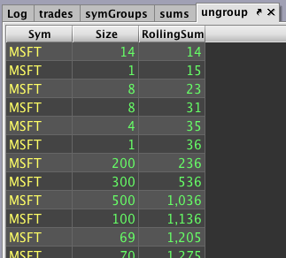 sums = symGroups.updateView("RollingSum=(int[]) rollingSum.call(20, Size)")