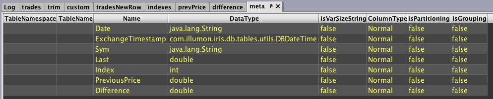 When integrating custom code into Deephaven queries, it may be useful to look at the table's metadata, which contains information about the table and the data it holds.