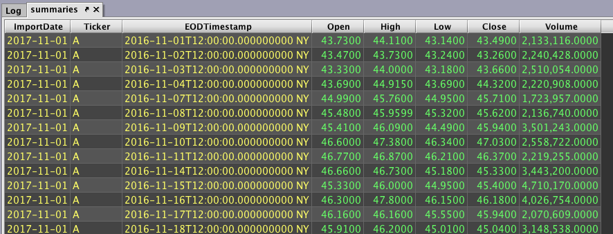 summaries = db.t("LearnIris", "EODTrades").where("ImportDate=`2017-11-01`")