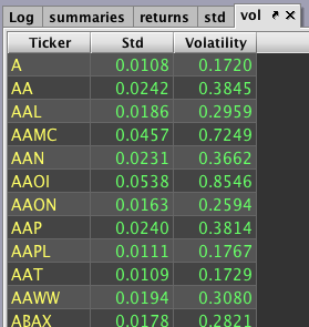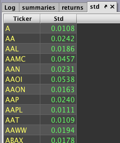 std = returns.view("Ticker", "Std=Return").stdBy("Ticker")