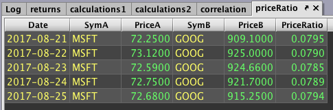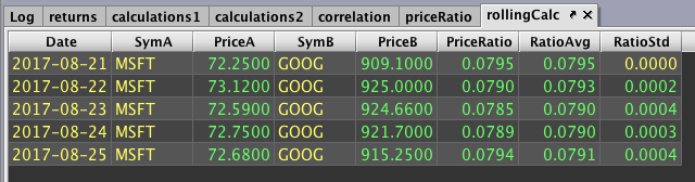 .updateView("RatioAvg=(double[])rollingAvg.call(20, PriceRatio)", "RatioStd=(double[])rollingStd.call(20, PriceRatio)")\