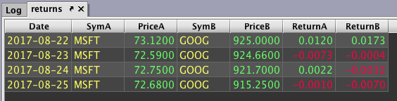 returns = sideBySide.updateView("ReturnA=log(PriceA/PriceA_[i-1])", "ReturnB=log(PriceB/PriceB_[i-1])")\