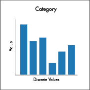 Category plots display data values from different discrete categories. By default, values are presented as vertical bars. However, by using plotting styles, the data can be represented as a bar, a stacked bar, a line, an area or a stacked area.