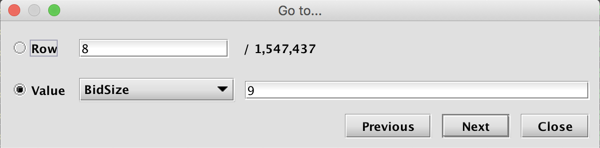 The Go to… feature makes quick work of getting to specific row in the table or jumping to the previous or next row in the table that contains a specific value or string contained in one of the columns.