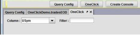 When you first use the OneClick feature in Deephaven, "USym" is used as the default value in the Column drop-down menu, as shown below.