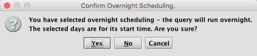 - The third tab is labeled Scheduling, and allows you to schedule when a query should run.