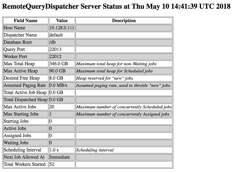 - Disconnected: The worker process disconnected from the dispatcher. Often this results from a problem that terminates the JVM without giving the worker a chance to notify the dispatcher (e.g., OutOfMemoryError or hotspot errors in native code).