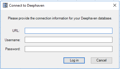 Clicking the Log In button will open the Connect to Deephaven panel, as shown below.